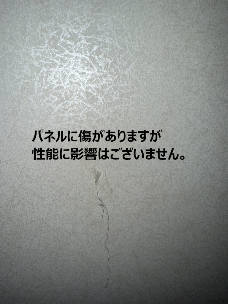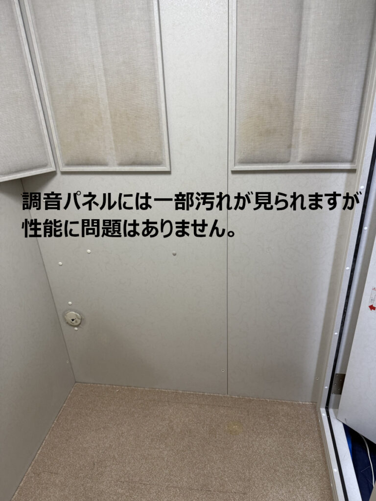 使用感があり、ところどころ傷などもありますが、性能面ではまったく問題ありません。調音パネルの表面には汚れが見られる部分もありますが、内部の共鳴管構造には影響しないためご安心ください。