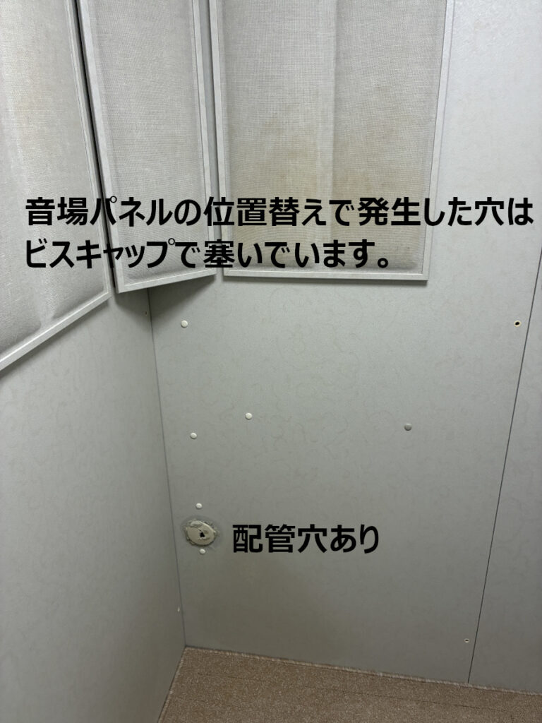 - 保守部品についてはメーカー生産完了となっている場合があります。製品の特性上、遮音パネル及び音場パネルのクロス張替はできません。