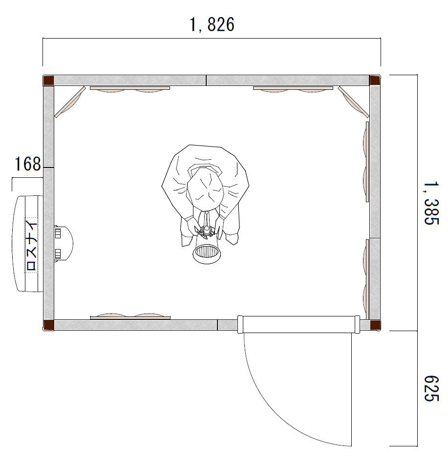 | 室外寸法 | W1,385mm x D1,826mm x H2,300mm (2.5㎡) |