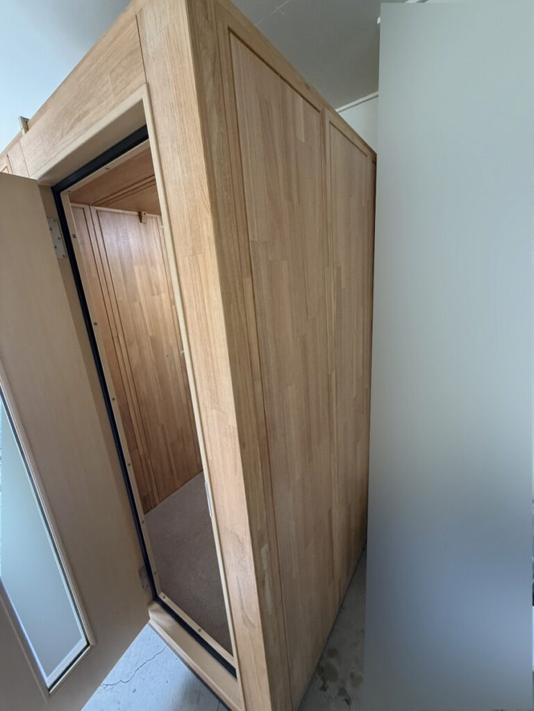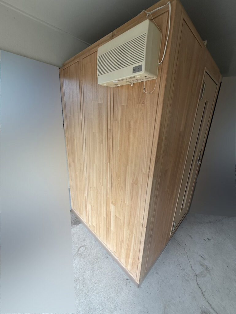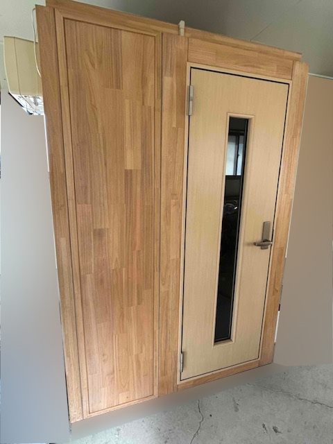 | その他 仕様 | ・ドア:木製防音ドア(外開き/左吊元) ・フィックス窓:無し ・壁音場パネル:5枚 ・照明器具:あり(中古品) ・他電装:換気扇(中古)、コンセント、スイッチ ・床仕上:防炎カーペット(中古品/別途税込12,540円にて新品交換可) ・床仕様:浮床なし/底床パネル標準仕様(畳・カーペット上に設置可) ・エアコン取付:エアコン取付痕なし(新規取付については応談) FAQ:エアコン取付について |
