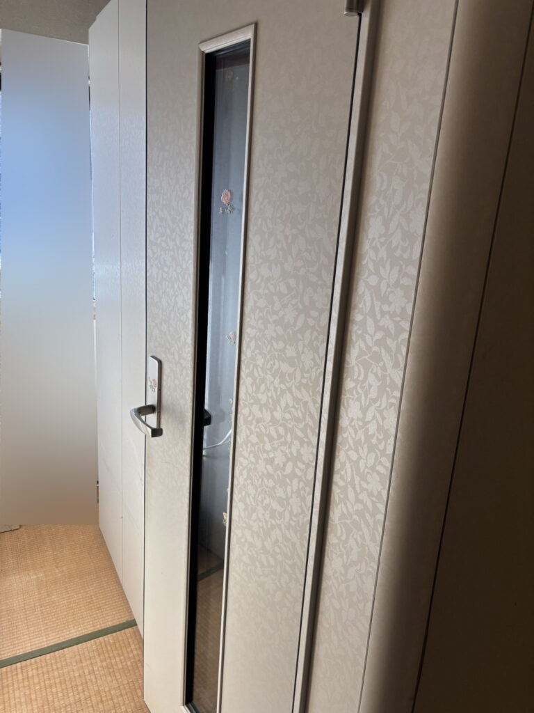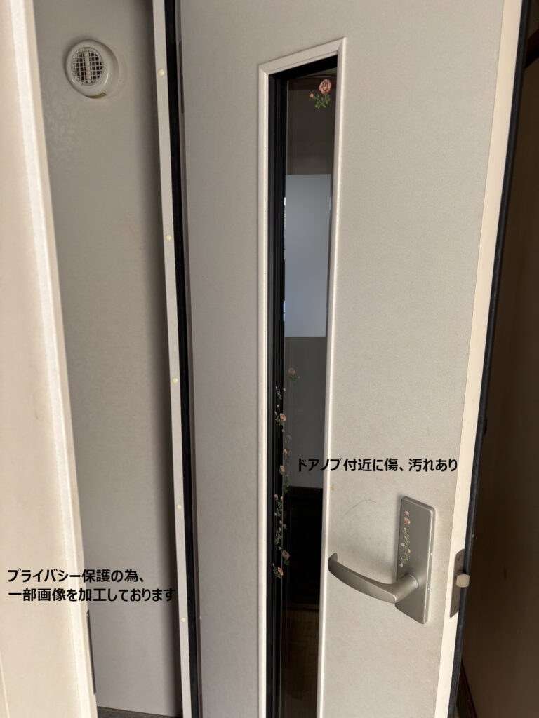 FIX窓、防音ドアに花柄のシールが貼られていますが、出荷前のクリーニングではがして納品いたします。貼られた状態で納品をご希望の場合は担当者にお知らせください。