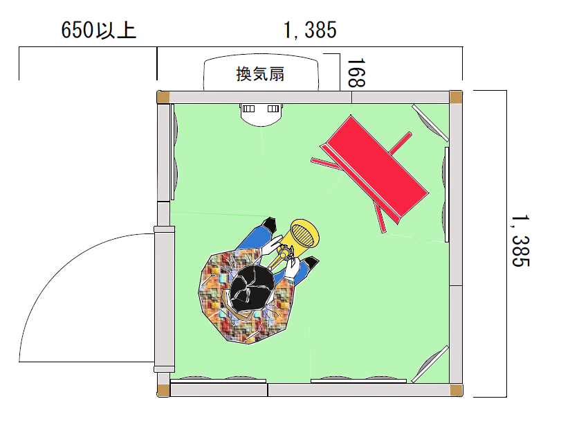 - 設置場所に応じてドア・換気扇・FIX窓・音場パネル類の位置変更が可能ですが、モデルによって制限があります。