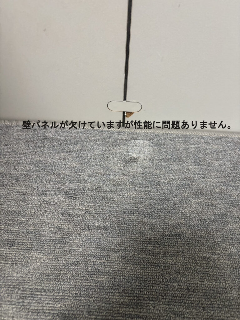 | その他 仕様 | ・ドア:木製防音ドア(外開き/右吊元) ・フィックス窓:2枚 ・壁音場パネル:8枚 ・照明器具:無し(別途税込26,400円にて新品手配可) ・他電装:換気扇(中古)、コンセント、スイッチ ・床仕上:防炎カーペット(中古品/別途税込24,530円にて新品交換可) ・床仕様:浮床構造(壁・天井を除く)/底床パネル標準仕様(畳・カーペット上に設置可) ・エアコン取付:エアコン取付痕あり(新規取付については応談) FAQ:エアコン取付について |